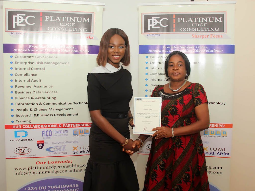 GallerySally OgwoOkey-Umahi2025-11-26T05:56:06+01:00 Our Trainings in Pictures Image Accordion Content Goes Here! Click edit button to change this text. Image Accordion Content Goes Here! Click edit button to change this text. Image Accordion Content Goes Here! Click edit button to change this text. Image Accordion Content Goes Here! Click edit button to change this text. Scroll down to see shots from our trainings and events. Risk-Based Internal Audit Workshop A Collaboration Between Platinum Edge Consulting Limited and Lagos Business School (LBS) Anti-Money Laundering and Counter-Terrorism Financing Training Business English & Productivity Training for Executive Assistants and Secretaries Risk Readiness and Resilience Assessment Workshop Operational Risk Assessment & Internal Audit Report Writing Risk-Based Internal Audit Workshop Risk Ownership and Audit Work Papers Documentation PRACTICAL ASSURANCE EVIDENCE GATHERING AND WORK PAPERS DOCUMENTATION SKILLS FOR 2ND AND 3RD LINES OF DEFENSE PRACTICAL RISK AND INTERNAL CONTROL OWNERSHIP AND ASSURANCE FUNDAMENTAL SKILLS FOR THE 1ST LINE OF DEFENSE (CORE AND SUPPORT FUNCTIONS).