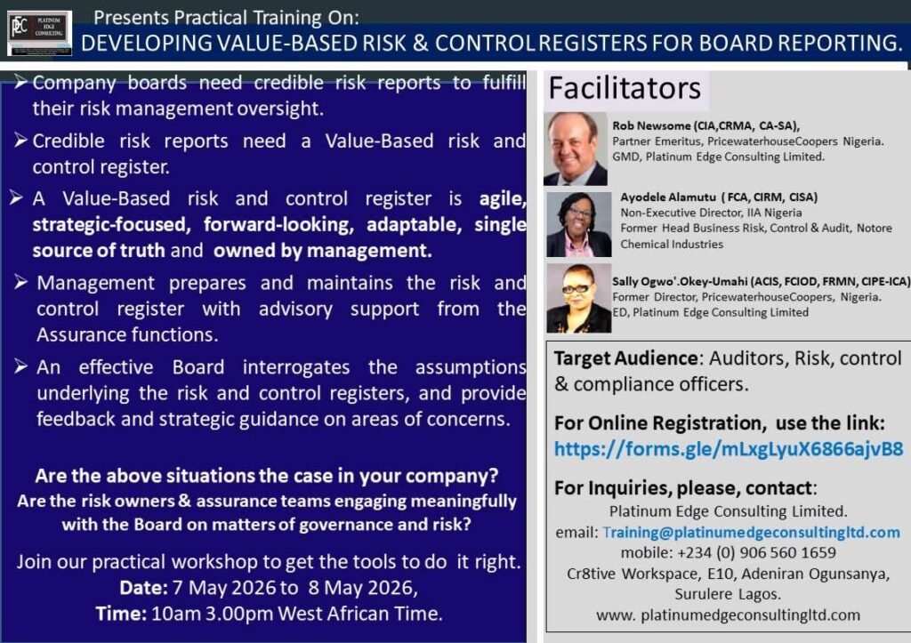 DEVELOPING VALUE-BASED RISK & CONTROL REGISTERS FOR BOARD REPORTING.
